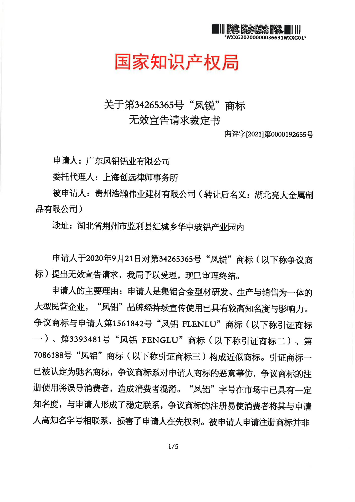 西双版纳傣族自治州辉知队 | 国家知识产权局:“凤锐”商标无效