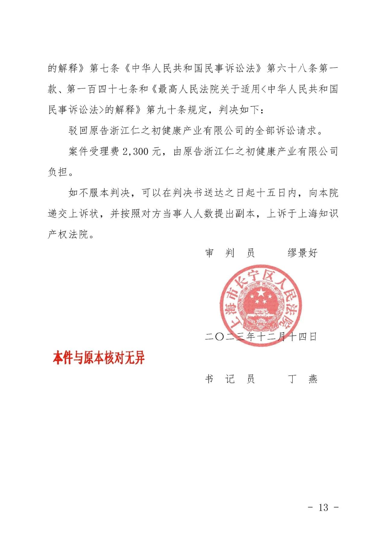 西双版纳傣族自治州辉知胜诉佳讯 | “仁之初健康”著作权及不正当竞争纠纷案,法院:驳回全部诉讼请求!